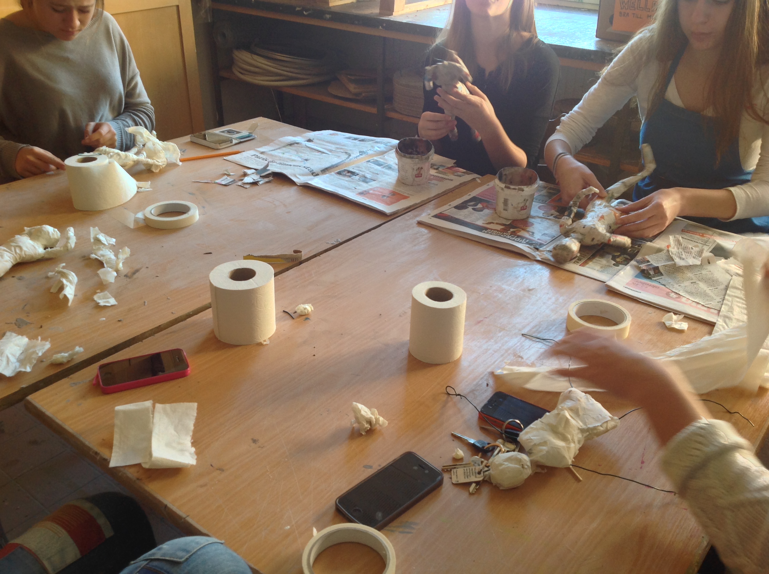 Av ståltråd, toapapper, tidningar och tapetklister skapar vi skulpturer.