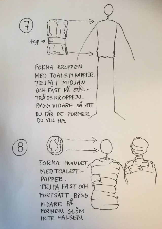 Bygg upp formerna med toapapper. Fäst med tejp.