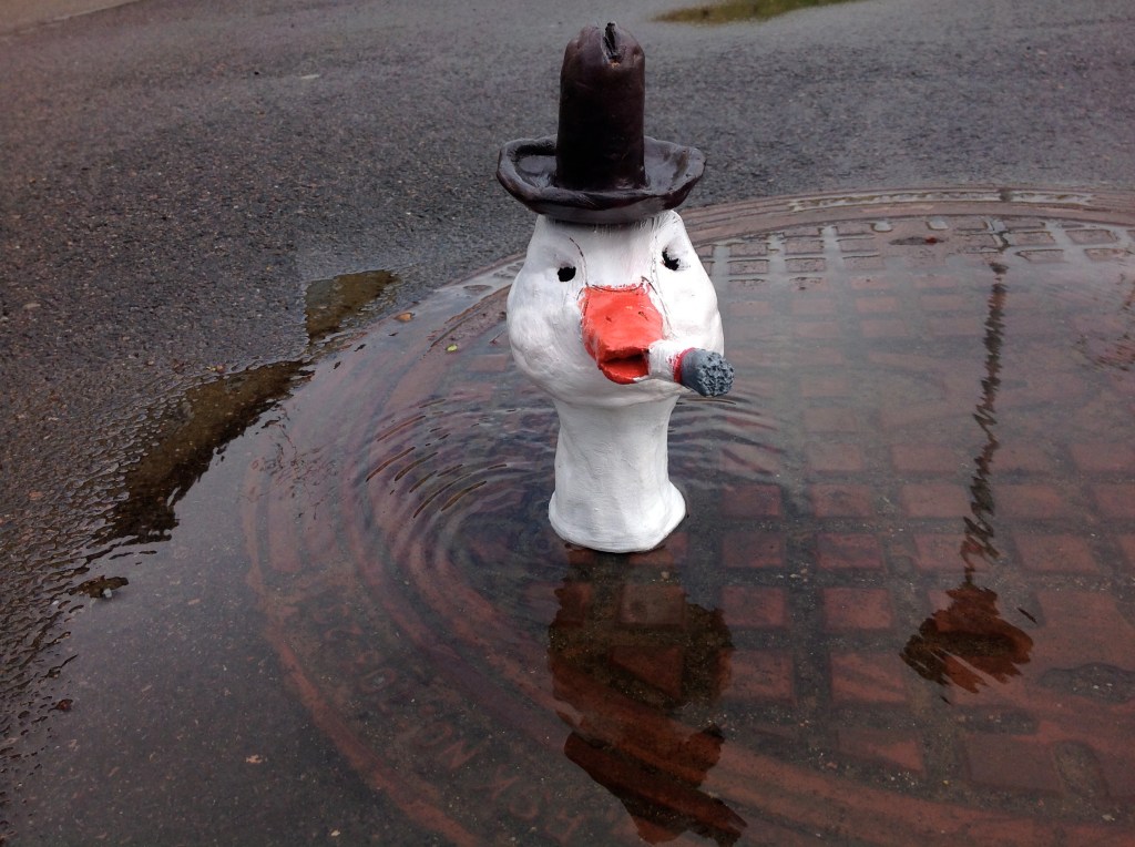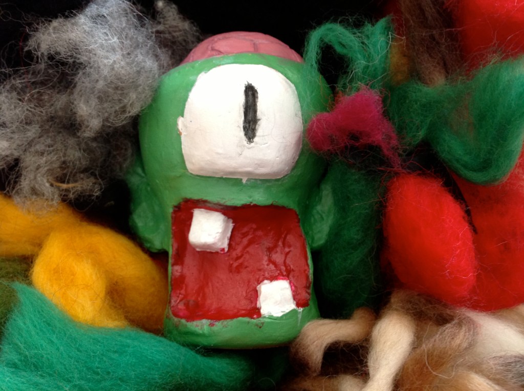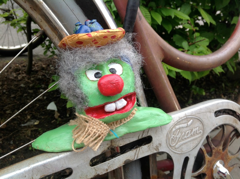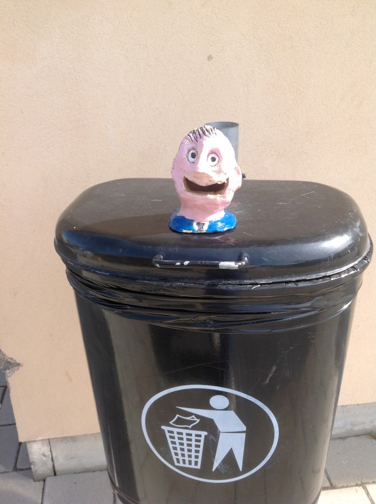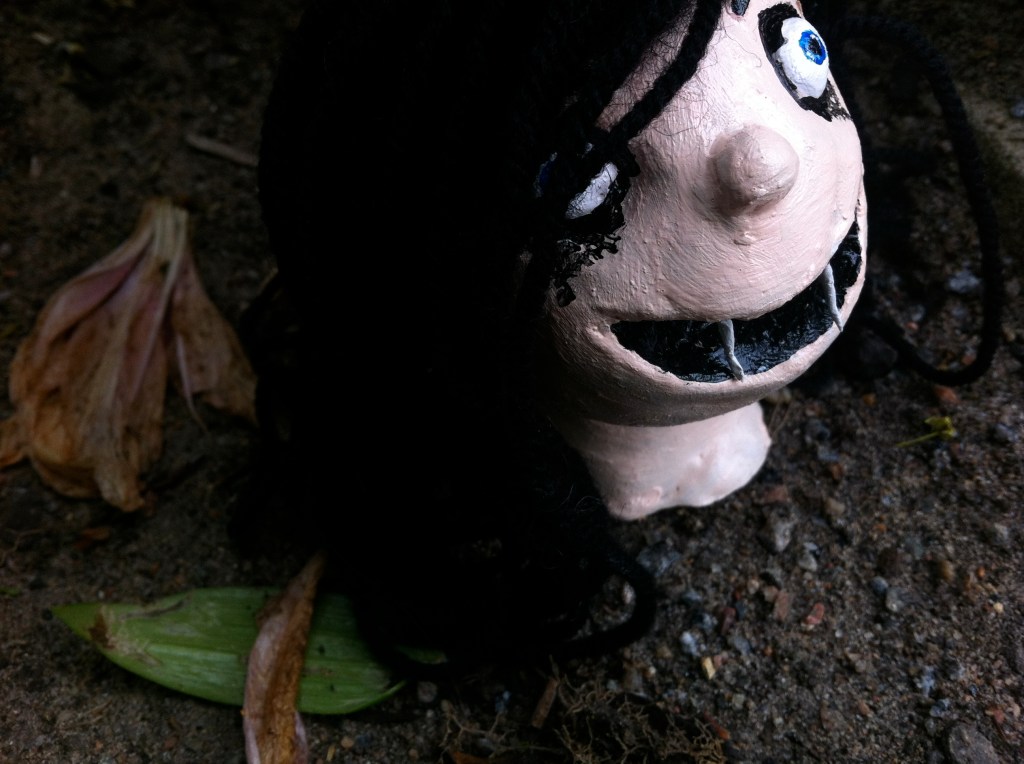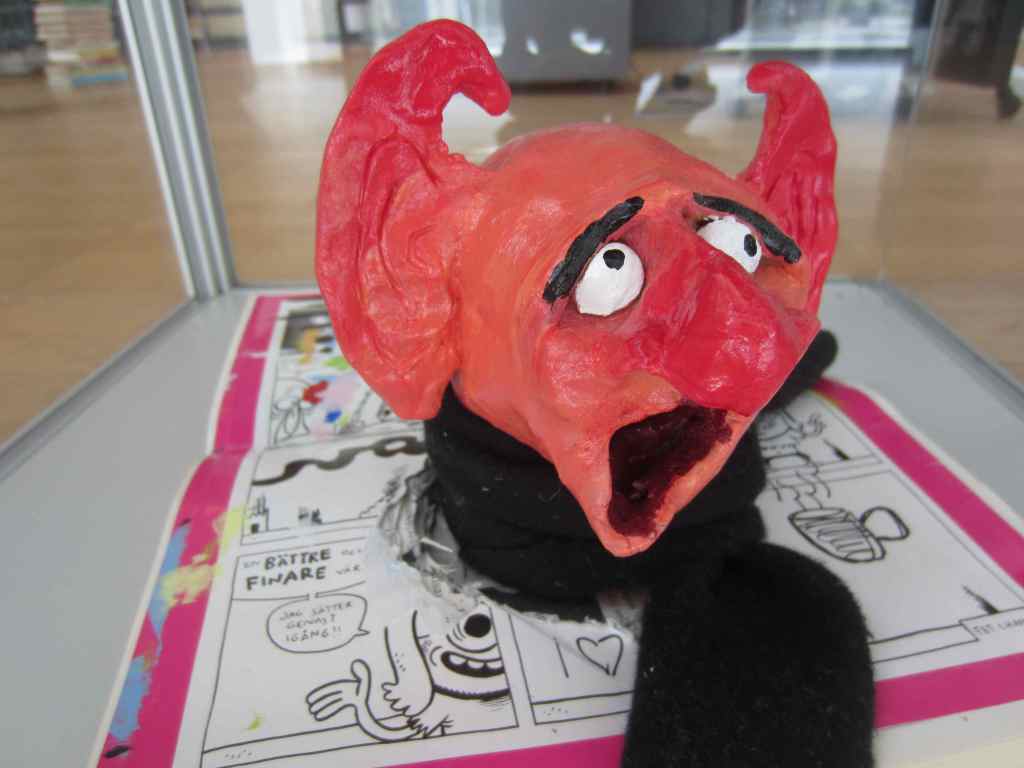 Elever i år 7 har fått i uppgift att skapa uttrycksfulla huvuden i lera, som de sedan målat och utsmyckat som de velat. Därefter har de placerats på passande ställen och fotograferats. Här ser du några exempel: