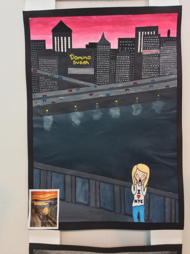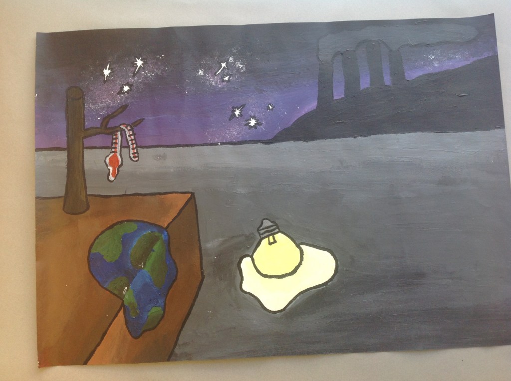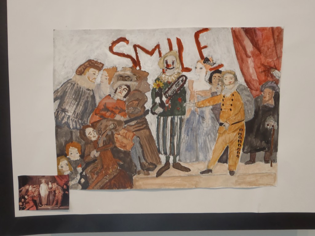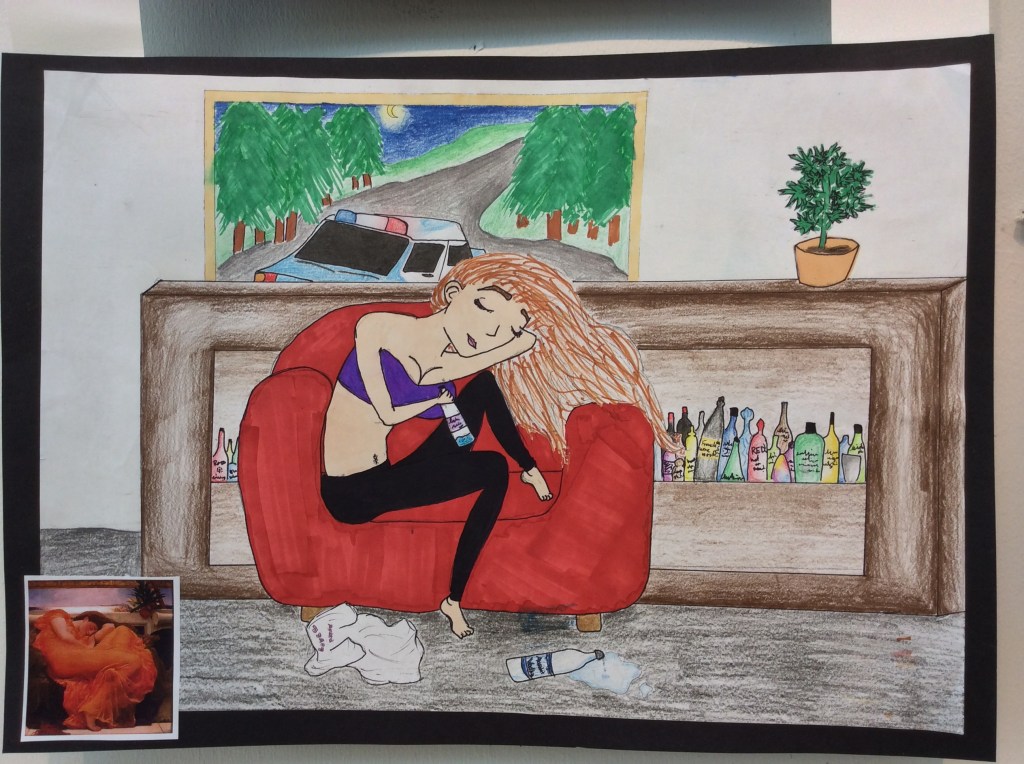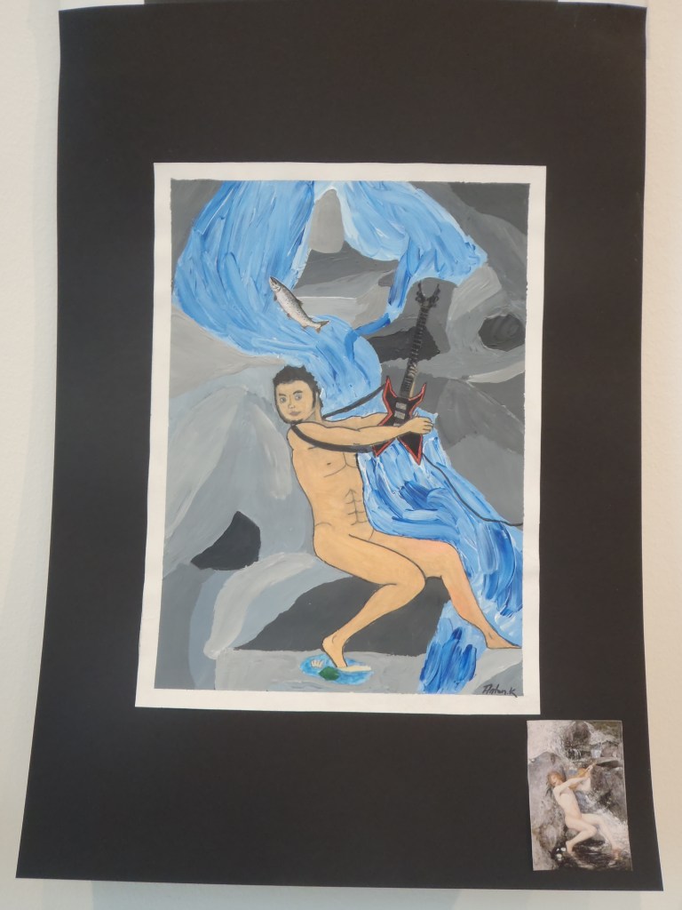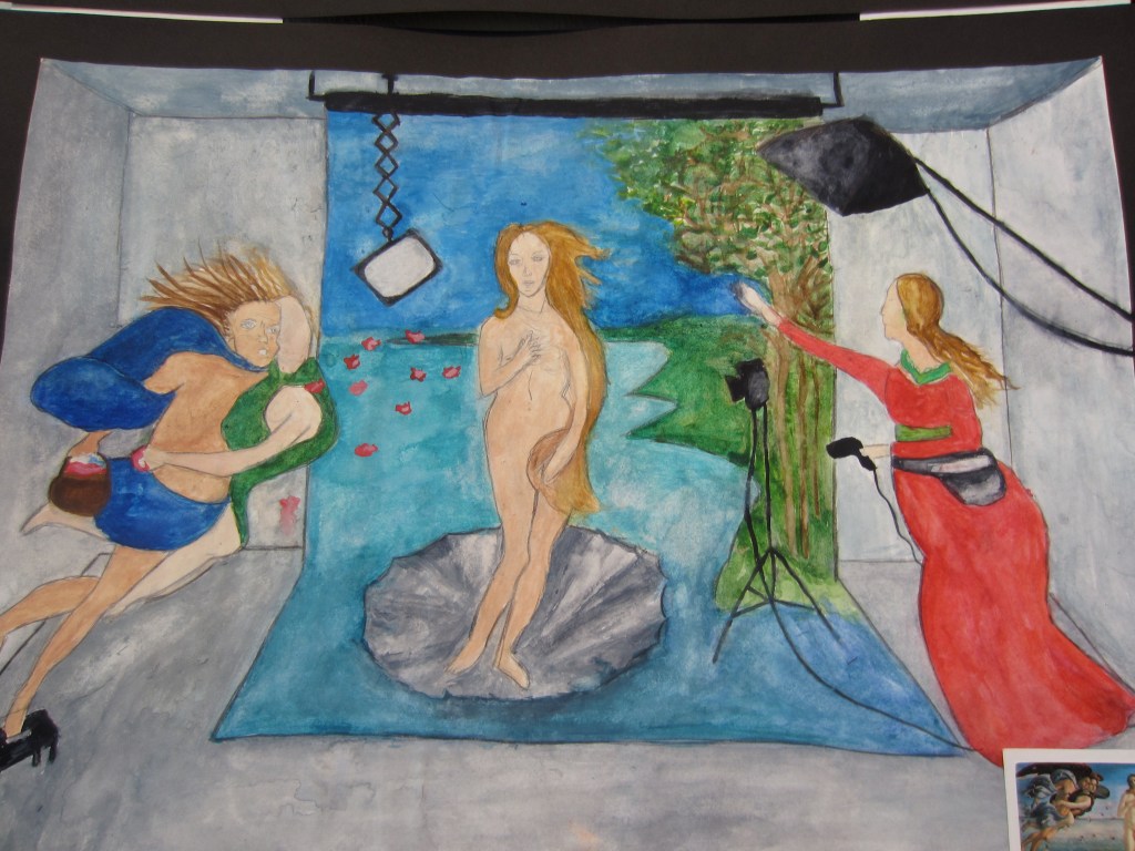 Elever har jobbat med att göra egna tolkningar på kända konstverk i valfri teknik.