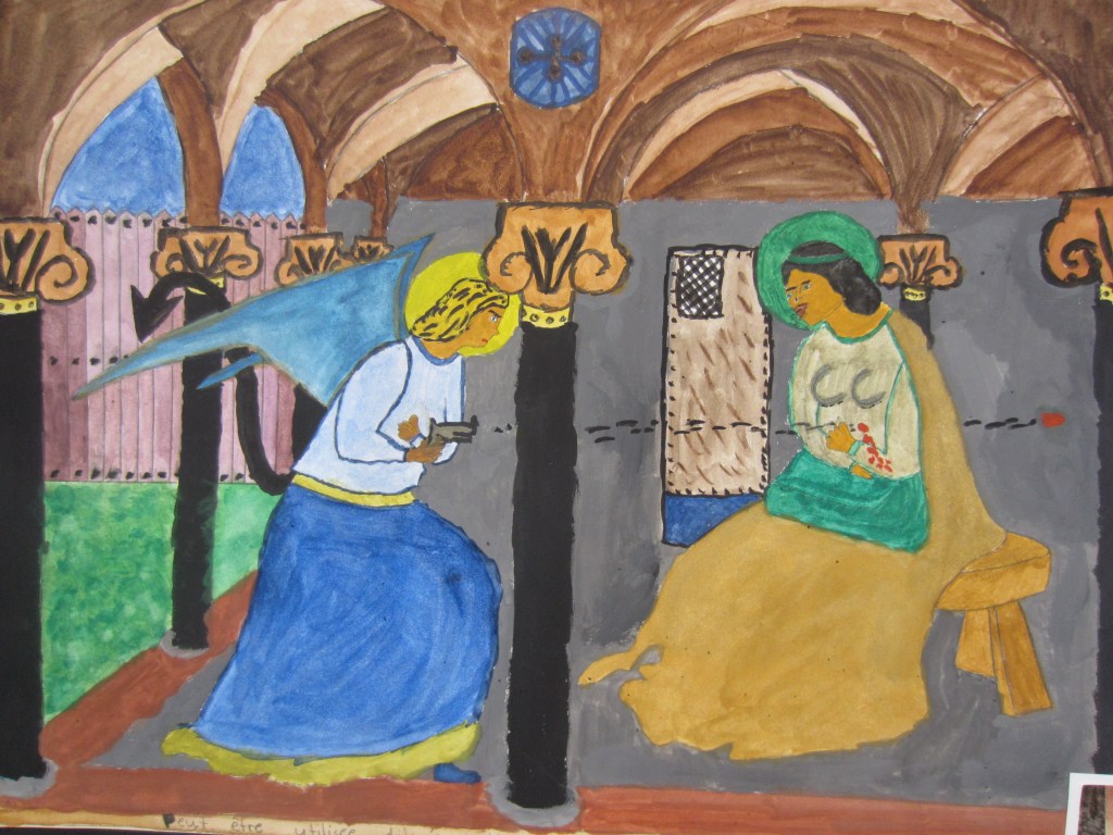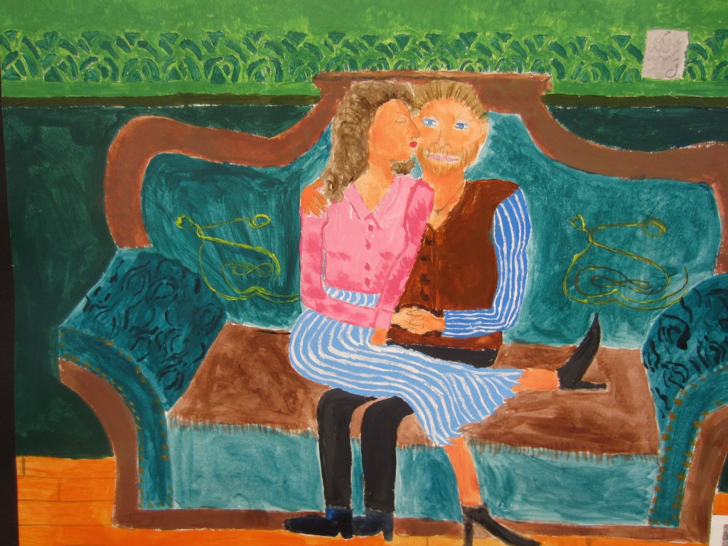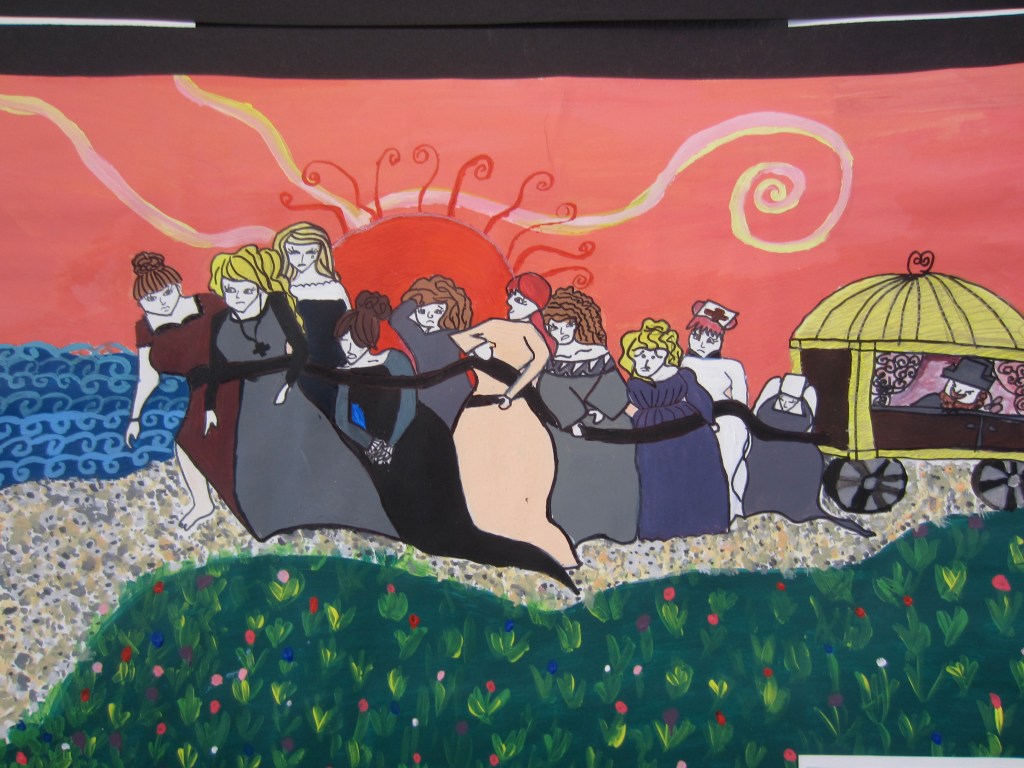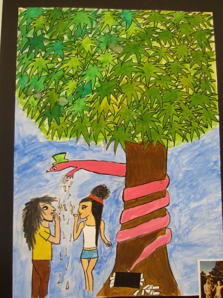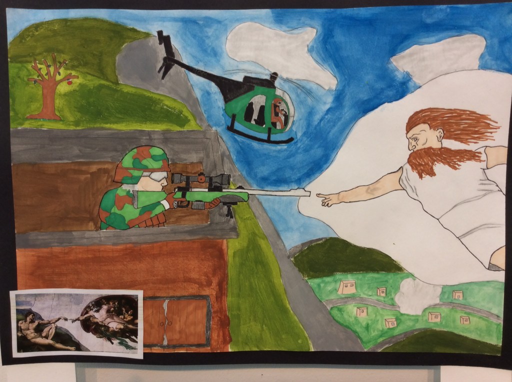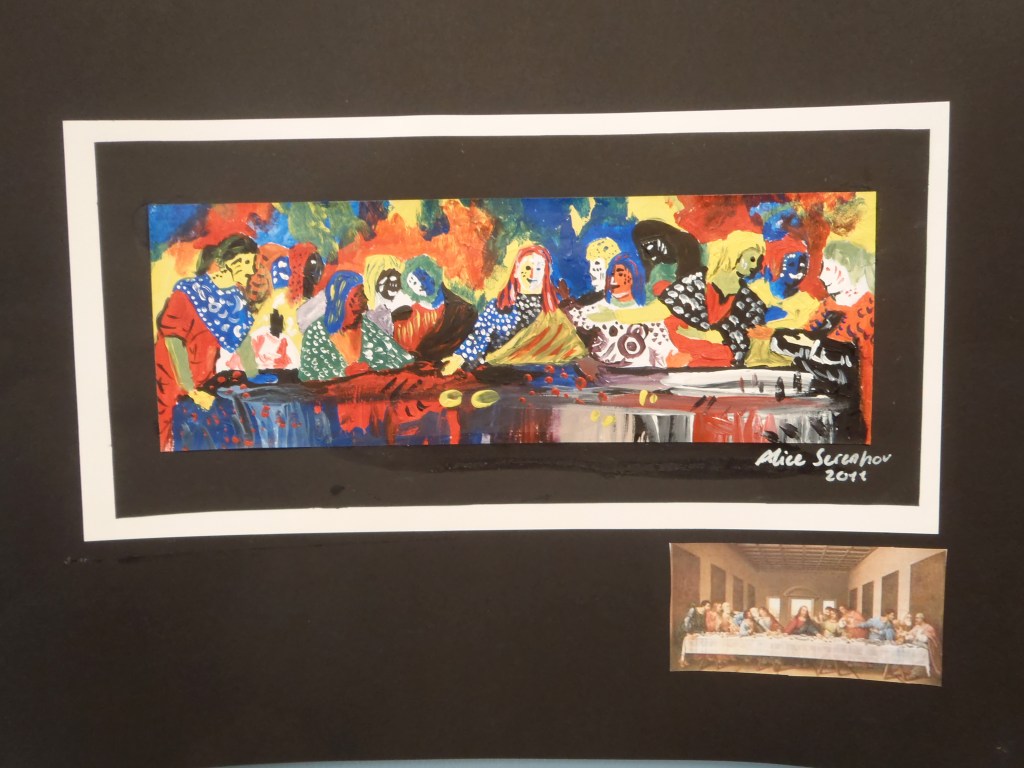 Elever har jobbat med att göra egna tolkningar på kända konstverk i valfri teknik.