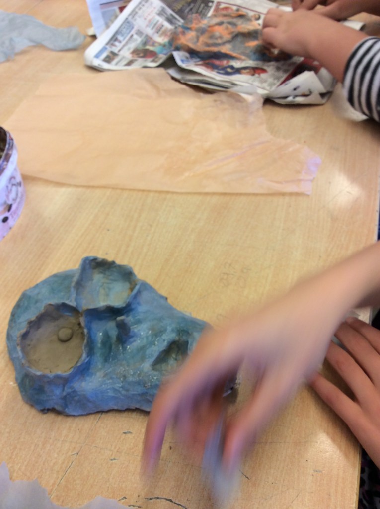 Eftersom färgen innehåller plast bör så lite som möjligt hamna i avloppet. Vi arbetar därför på papptallrikar och slänger tallriken när vi är klara. Skölj alltid penseln i kallt vatten. Sköljvattnet går att hälla i vasken, men torka gärna av penseln med en pappersservett innan du sköljer den.