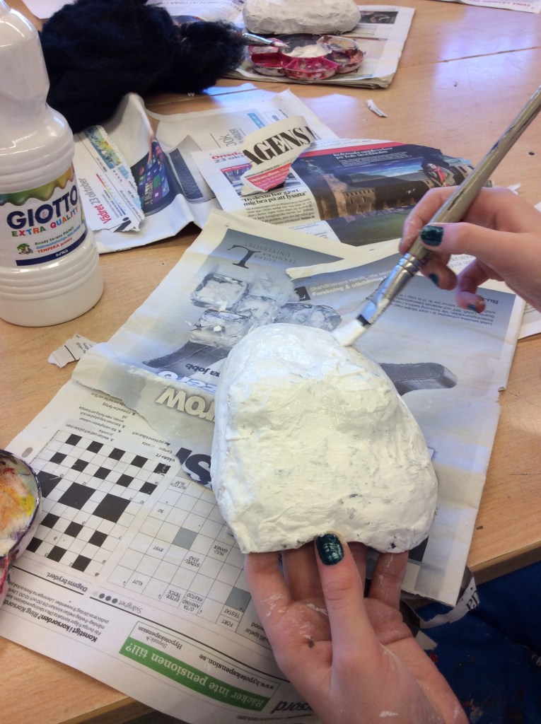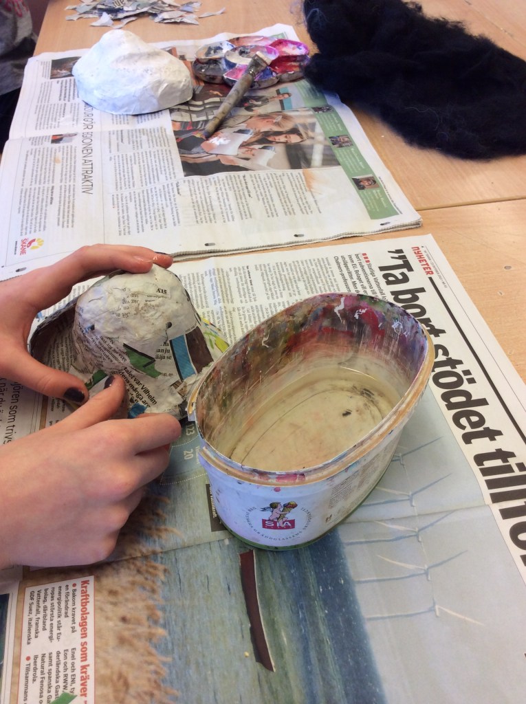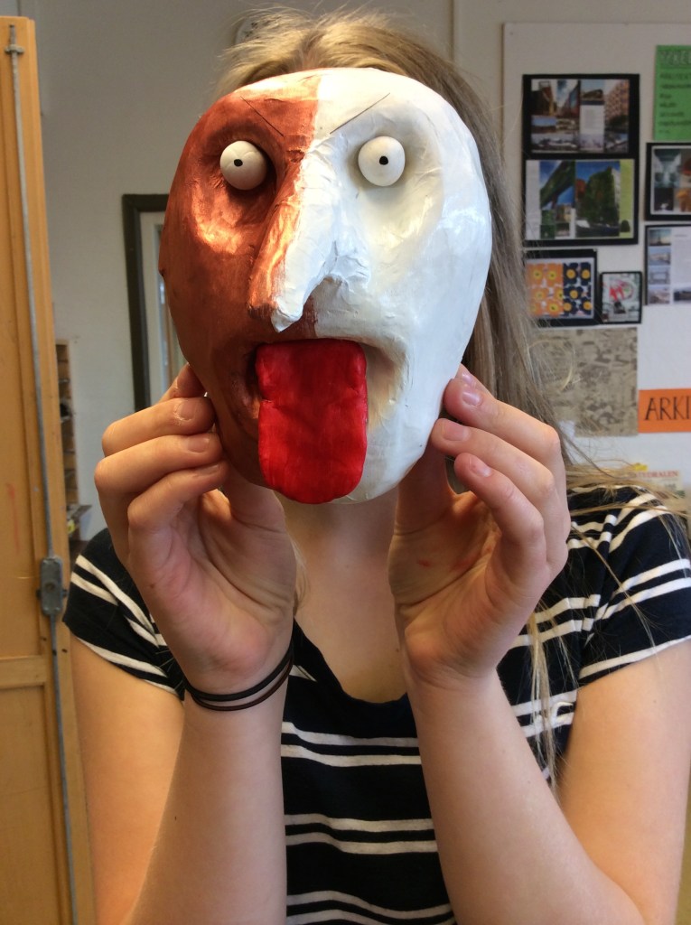 Masker har använts i många kulturer, i alla tider, och för olika syften. I Europa har de använts vid t.ex hovens fester, vid julupptåg, på landsbygden eller som skydd. Nutida vanliga masker är julaftonens tomtemask och läskiga eller roliga masker vid Halloween. Genom att tillverka en egen mask får du chans att prova en urgammal tradition, du får arbeta med en billig och enkel teknik: papier maché, och du får öva din kreativitet och skaparkraft. Din mask skall ha minst ett öga, nästa/nos, mun samt någon typ av öron. Resten bestämmer du själv.