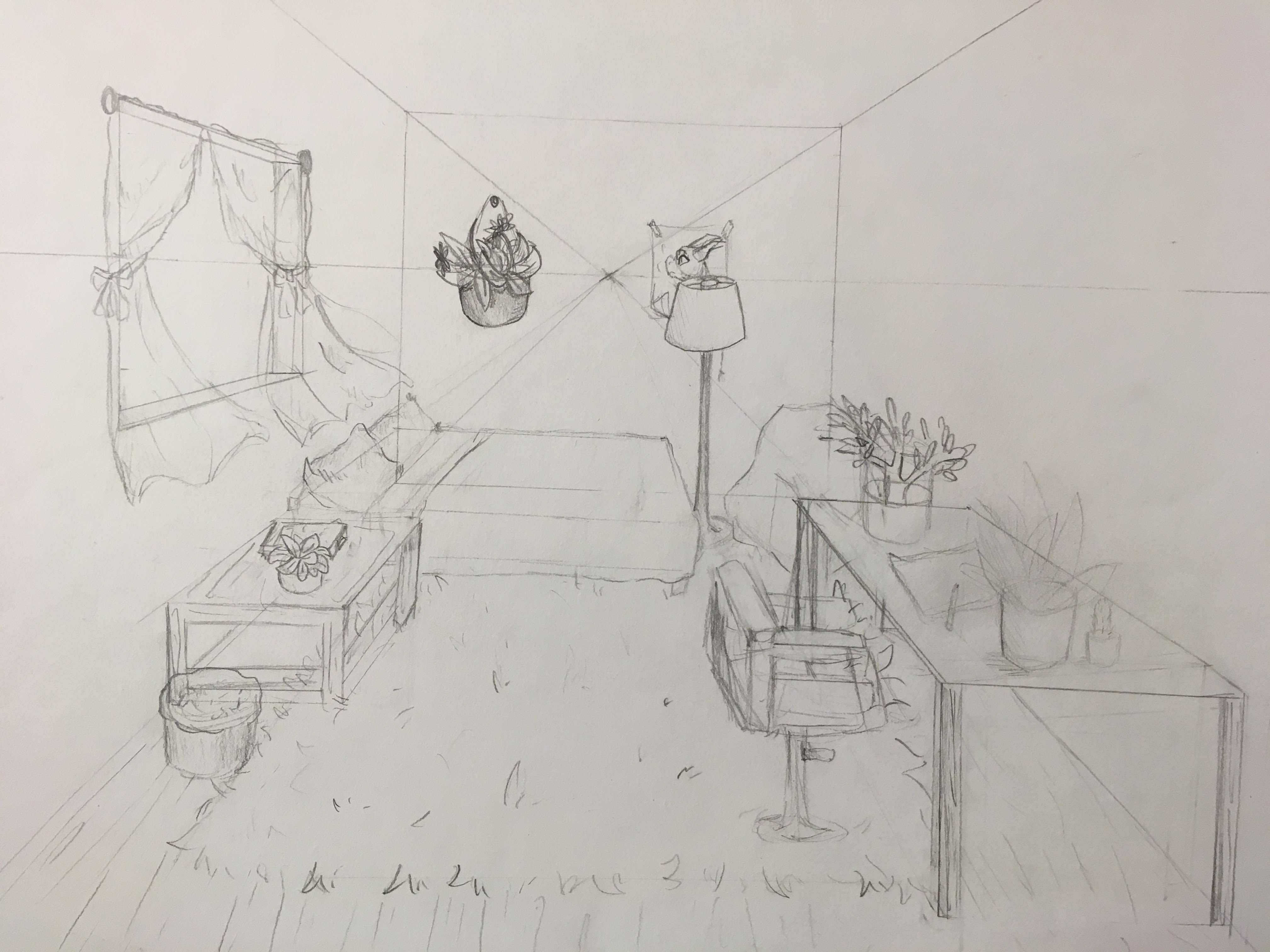 Interiörbild i enpunktsperspektiv