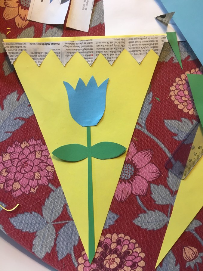 Rita inget med penna. Allt skall vara gjort med klippteknik.